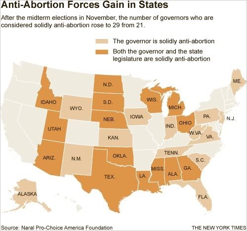 The lawmakers are drafting, and some have already introduced, bills that would ban most abortions at 20 weeks after conception, push women considering abortions to view a live ultrasound of the fetus, or curb insurance coverage, among other proposals.In Florida and Kansas, legislators plan to reintroduce measures that were vetoed by previous governors but have the support of the new chief executives, like ultrasound requirements and more stringent regulation of late-term abortions.
