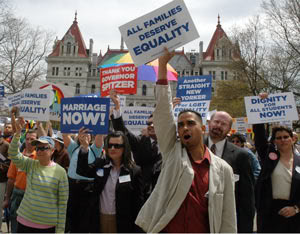The New York Times ran what can only be described as an encouraging article on the movement to push the marriage equality bill forward in Albany. It appears, with the full support of our deliriously popular Governor, forces are convening to create a real multi-pronged effort.