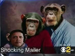 * And after getting busted sending out an email depicting Barack Obama as the child of two apes (right), teabagger Orange County Republican functionary, Marilyn Davenport "apologized" (and says she won't step down):"I humbly apologize and ask for your forgiveness of my unwise behavior," the statement said. "I say unwise because at the time I received and forwarded the email, I didn't stop to think about the historic implications and other examples of how this could be offensive."You have to click over to Truth Wins Out and read Wayne Besen's "The Tea Party Racist? No Way, Because Monkeys Are Not A Race," and Karen Ocamb's "OC Republican Official Apologizes for Racist Email, Won't Resign." She noted that "In an Eyewitness News/SurveyUSA poll, 70% of Southern Californians familiar with the email said they found it offensive, 27% did not." Who the F are the 27&?!In the statement, Davenport also quoted the Bible and said she was "an imperfect Christian" who tried to "live a Christ-like honoring life."