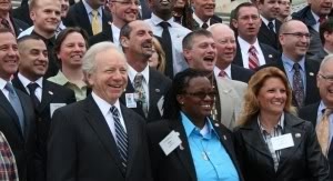 Evelyn Thomas standing next to Joe Lieberman at the DADT Repeal Signing Ceremony. How ironic that many of the White House 13 that were honored as heroes on that happy day now still find themselves treated like common criminals by the same administration.