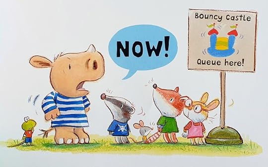 Archie (a.k.a. Otto in the US) first appeared in the 2013 picture book NO! (written by Tracey Corderoy). Its success led to five more books featuring the irrepressible Archie, including this week’s recommendation, NOW! – in which the Rhino family go on holiday – and Archie must learn to be patient.