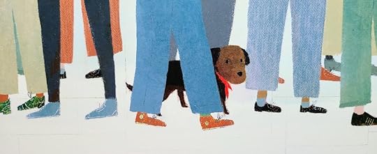 On the other hand, Perdu works splendidly as the simple story of a little lost dog in search of a home. Jones’s art is exquisite. Textured and bold, to my eye, it has a warm, retro feel reminiscent of illustrators like Ezra Jack Keats and Charley Harper. Perdu himself has all the charm of a scruffy little mongrel, and much of the story’s emotion is told through the brilliant way Jones captures his body language.
