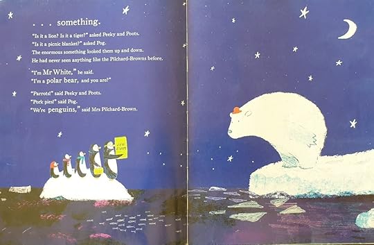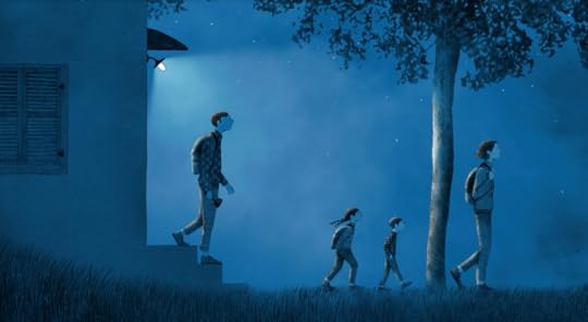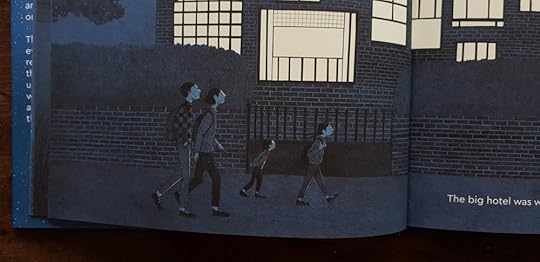 Dorléans' attention to detail and gently paced text is so evocative. She describes the family walking through 'the sleeping village' with pavements ‘still warm from the heat of the day.' They pass a warmly lit hotel, still ‘wide awake…[and glowing] bright like a chandelier,' before reaching the edge of the village where the 'last house…was almost asleep. It had one eye open.'