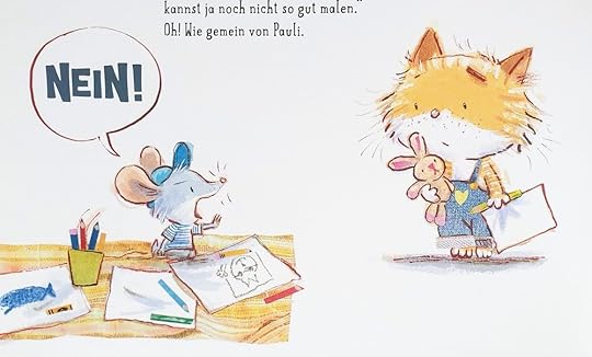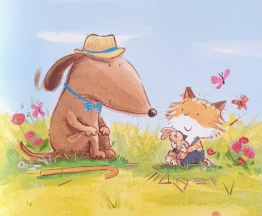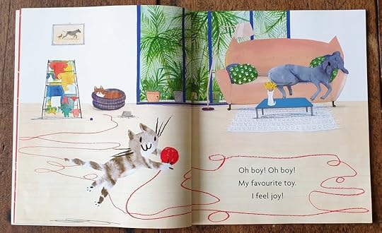 True, a one-legged character is a Unique Selling Point for a picture book. But what initially attracted me to What Happened to You? are Karen George’s illustrations. They are soft, and she effectively depicts the imaginary aspects by using abstract colours. As with all good picture books, the images add to the child’s understanding of the story, and her expressive characters speak volumes.