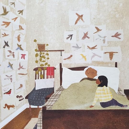 I’m still struck by how unusual it is for that to feature in a picture book. Curiosity aroused, I emailed Julie Flett and asked what led her to the decision to include the child?