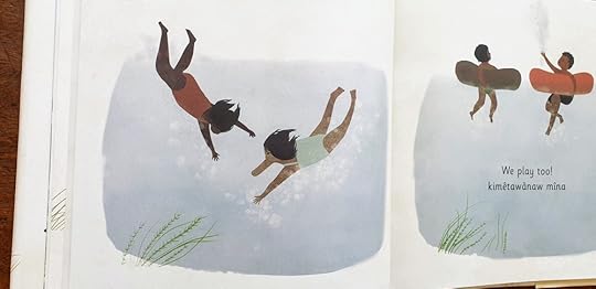 Picture book creator Julie Flett was more thoughtful than I. Her delightful We All Play/ kimêtawânaw immediately ticks the diversity box with its inclusion of Cree words and children. But she also depicts a swimming child with a malformed arm. And why not? Because kids with disabilities (like Joe, the shark-fighting pirate!) like to play, too. There’s no comment or explanation. The child is simply there – an incidental but profound little detail, subtle enough that it might easily be overlooked.