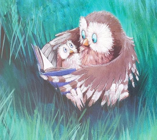 Chapman’s anthropomorphism is subtle. Her illustrations make eating biscuits, reading books and being tucked up in leafy blankets the most natural thing in the world for an owl to do! Yet her owls still look believably naturalistic. (Their downy feathers look like they’d ripple if you blew on them). The characterisation and scenarios are convincing too, which lends the story a cosy, everyday feeling.