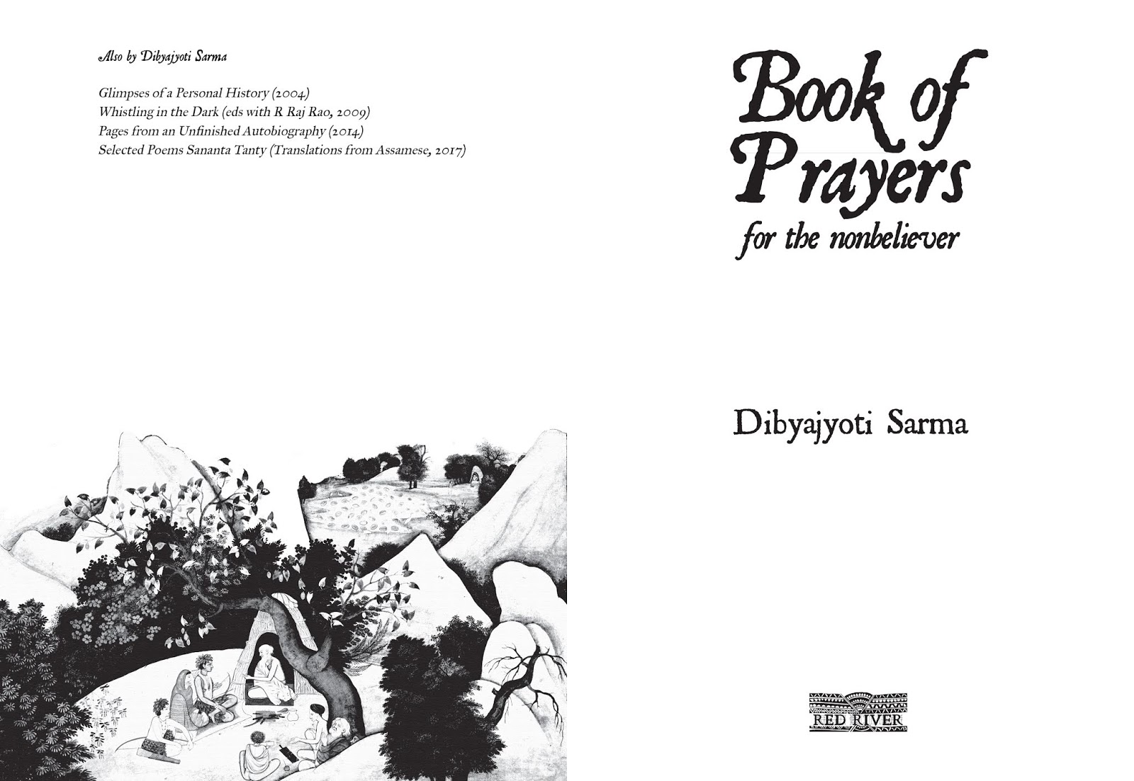 Dibyajyoti Sarma is both poet and small-time publisher of beautiful volumes of poetry. His Book of Prayers could be placed in an art gallery. But nowhere does he say that the illustrations are his. The reader is baffled. His poetry is a mix of myth and history. His grandfather returns as a beggar to Nalabari from East Pakistan, with a few gold coins of Queen Victoria tucked in the knot of his dhoti, and tall stories of the wealthy life he had lived. His poems are well grounded in fact and reveal a culture which he displays lovingly and yet subverts dangerously.