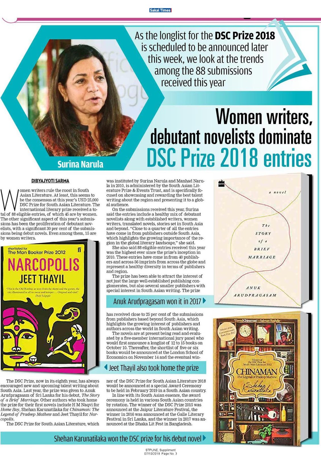 I wrote something about DSC PRIZE 2018 in Sakal Times, 7 ...