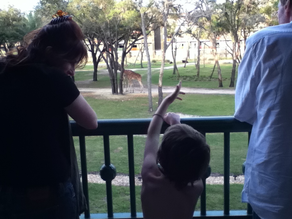 We stayed at Animal Kingdom's Kidani Lodge which was amazing. We got an upgrade to a room with a view from our balcony of the exotic animals who roamed the "Savanna". He had a field guide and would wake up and check off who he saw wandering, giraffes, ostrich, opaki....