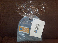 We were quite excited to get a package the other day from my old playgroup friend/songstress and now children's clothing guru, Mackenzie Fairhead. She and her partner Kathleen have started a line of clothing called Cal&Bram (named for her little cuties) "Where Petal Meets Metal". The tee-shirt she sent for Little Man to test out came in cute packaging, wrapped in plastic like a gift basket with a darling gift tag on it.