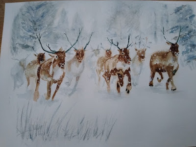 My Watercolour Artwork. My best to date, I think. Reindeer in the snow :)