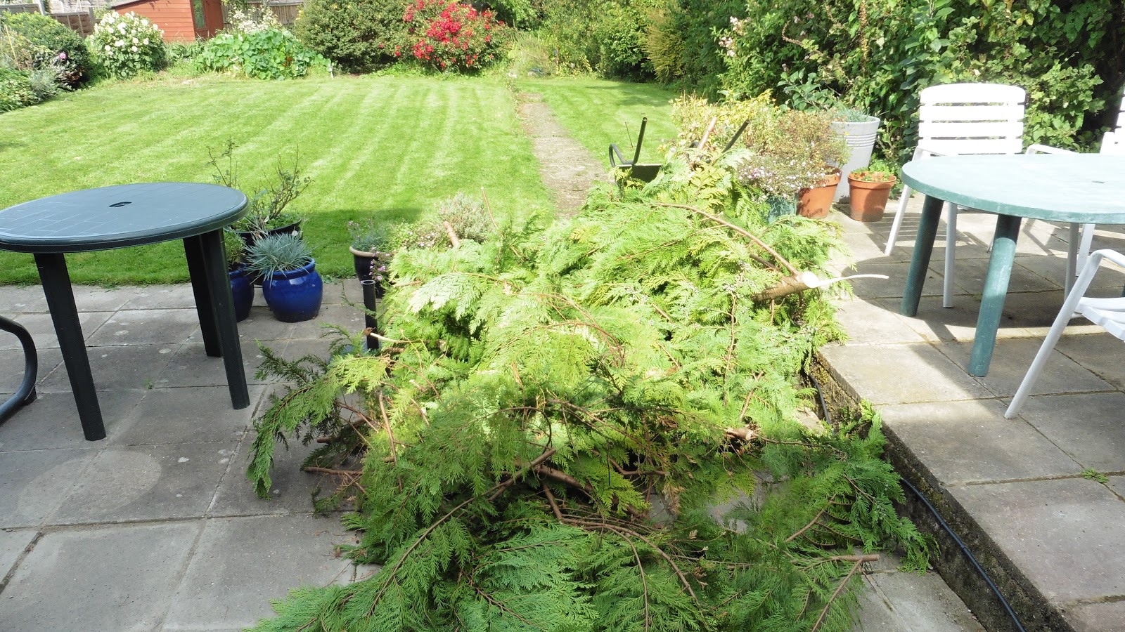 Well, I have had a busy day in the garden. Not sure it counts as working though. Gardening for me is perhaps not a good thing and I certainly don't have green fingers. Just chopped (or is it hacked) a conifer that was growing close to the ground like a living tepee, which I quite liked, but was slowly taking up more and more of the garden so drastic action was required.