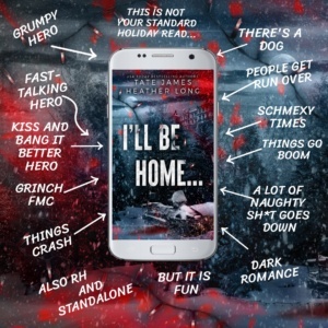 Oh, you have been good or maybe you were perfectly naughty, either way, I’m excited to share that I’ll Be Home… is now available on Kindle, in Kindle Unlimited and in print. It’s the holiday romance you didn’t know you needed or wanted. Even better, it’s a wild romp written with one of my favorite people. Tate James and I really wanted to celebrate holidays right. So what could be better than a dark romance, you know? By the way, it is a dark romance, so be sure to check out the trigger warnings in the foreword.