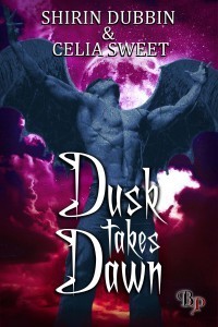 Here's the blurb for Dusk Takes Dawn:Paranormal peacekeepers, Dawn Maza, the witch with a capital 'B', and Duskan Entreri, one helluva beast, are partners and lovers… Actually, they are in love. They're not lovers yet. Stone separates them, making her a statue at night while he turns to granite by day, and the two have never consummated their love. Instead, they communicate via video and voice mail. That travesty will change tonight.