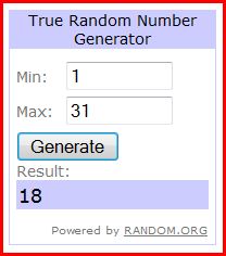 *Hushed tones...* Due the random nature of our Random Number Generator, we will now plug in the entire thirty-two entries and see which is chosen by the RNG.