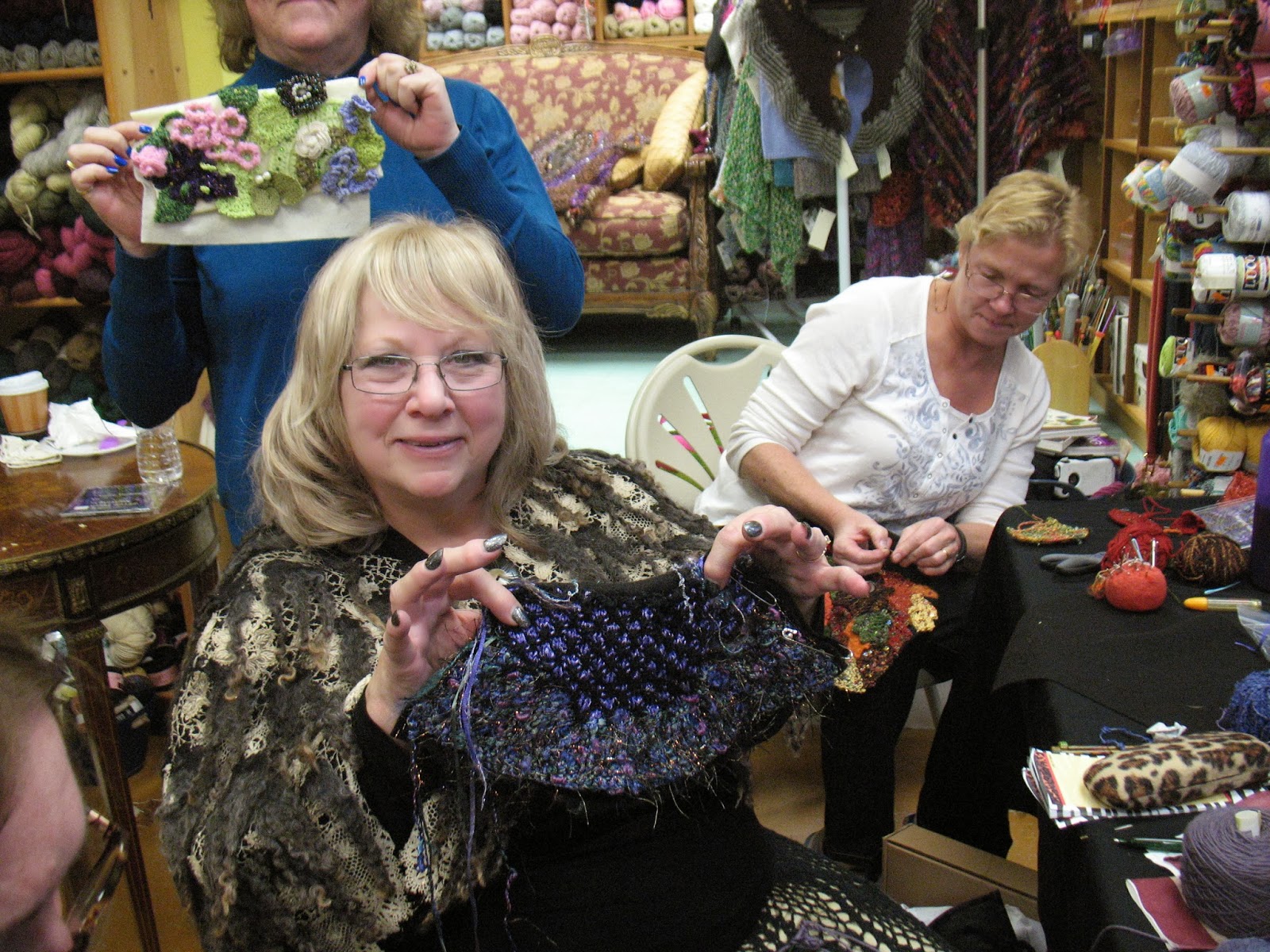 I was invited to do a Free Form workshop at Country Yarns, in Wallingford, CT. Lovely, charming shop, and most enthusiastic students. We had a wonderful time and we were fed a fabulous lunch.