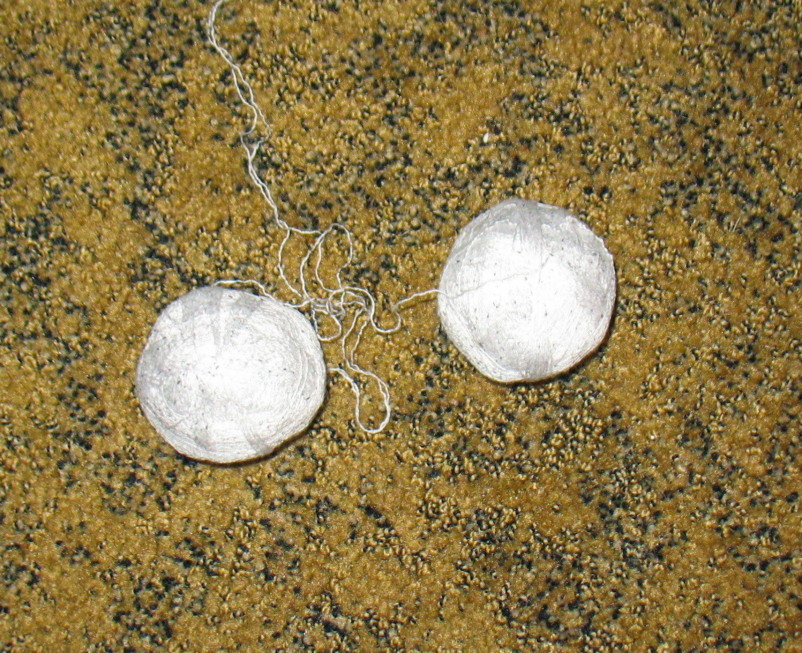 Marianne gave me a knitted calendar, that looked like a long bell pull. The dates were printed on the fabric, and each day you unraveled that day. When I got to July, I had quite a large ball of yarn. So I cut the yarn, and started a new ball. At the end of the year, I had two balls of yarn, my year "unraveled". The recycler in me thought "what can I do with these 2 balls of yarn?".