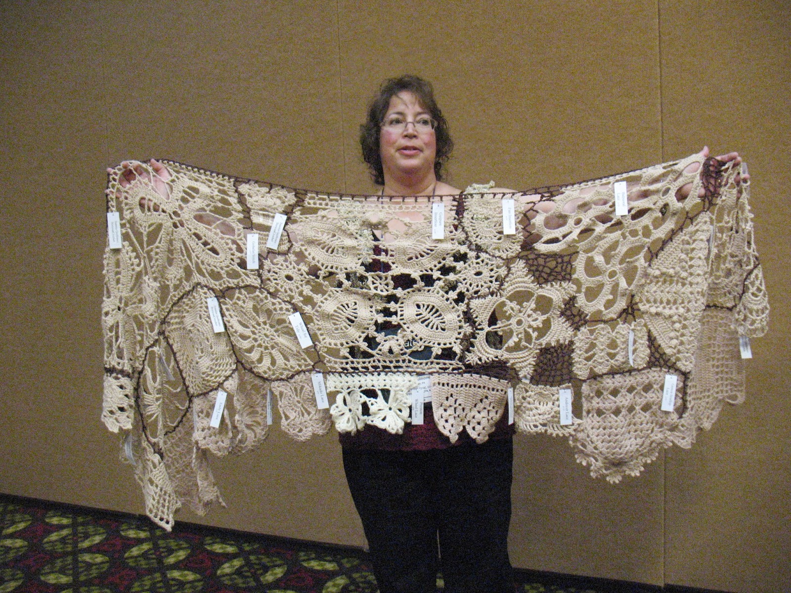 Juanita's shawl that was made using many different motifs from a very old book. It was just beautiful. Juanita was part of group that translated all the old patterns, and the shawl was her project with them all.