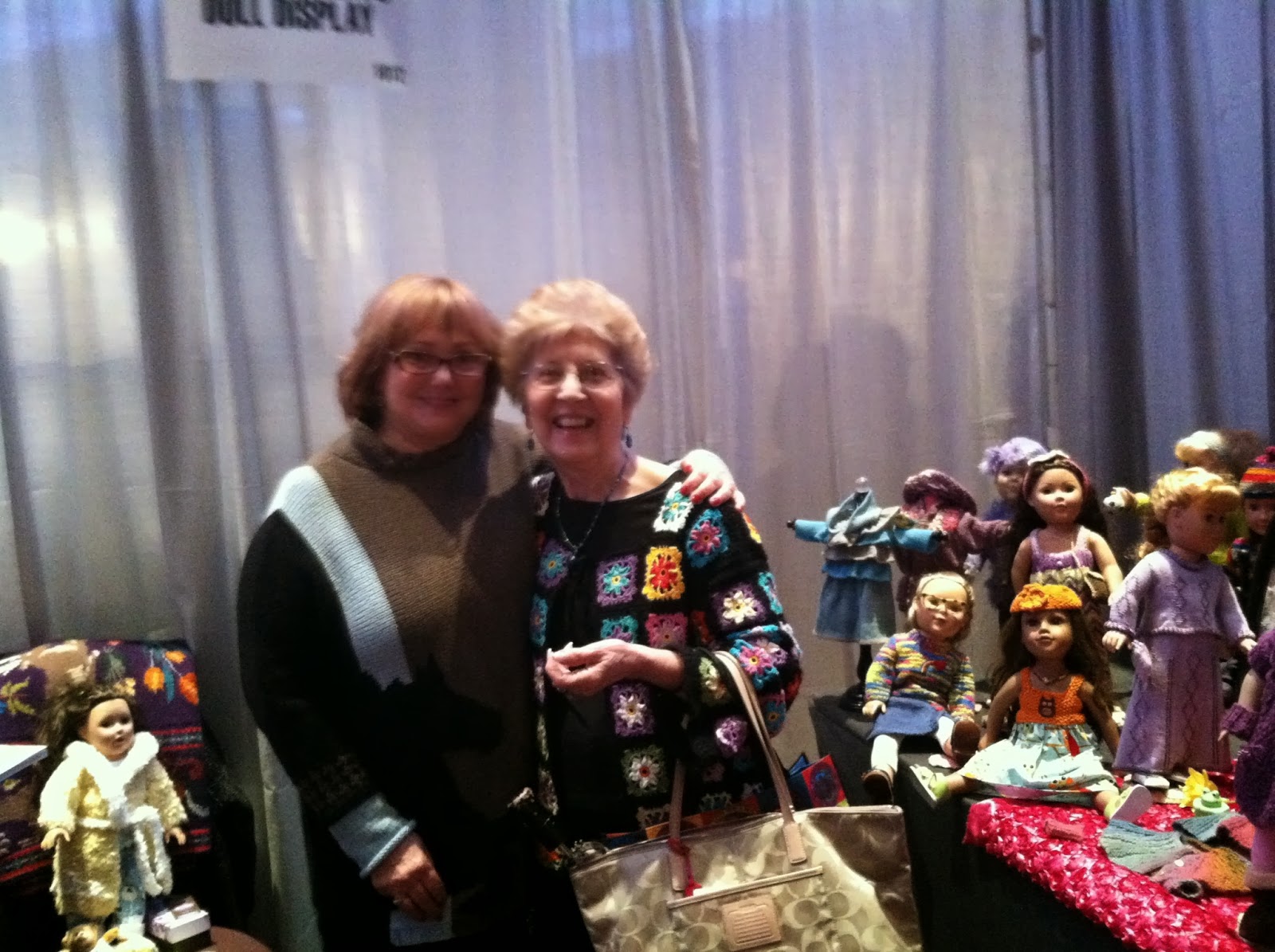 One of the first people that I ran into was Nicky Epstein. Nicky's booth with all the wonderful doll cloths from her books, KNITS FOR DOLLS AND CROCHET FOR DOLLS was a big hit with all, especially the young set.