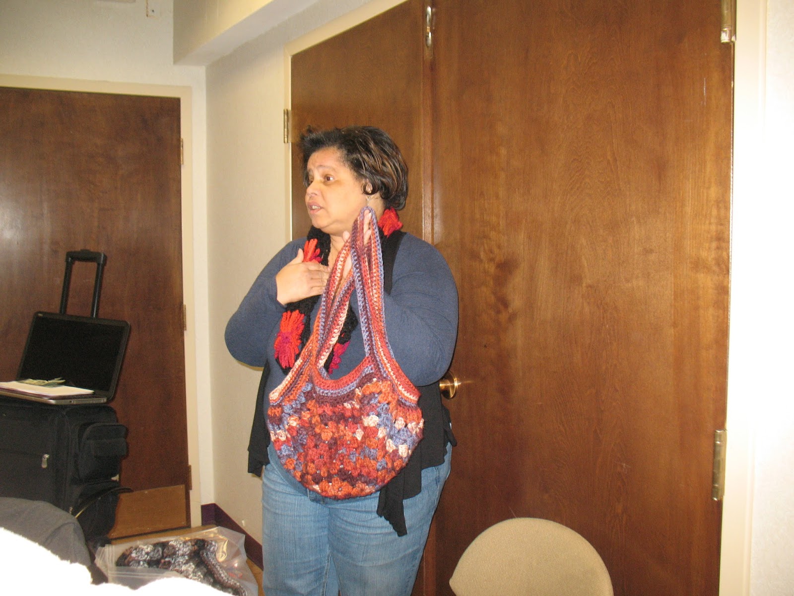 Janet and Me. Janet was the student that I did not recognize as being a student of mine several years ago. I was describing an incident when I tried to change a student's mind as to her color choice and how wrong I was to try to do that. Suddenly, Janet raises her hand and tells everyone that she was that student. Was my face red, good thing that I was only saying nice things about Janet's bag. I will not forget Janet again :-).