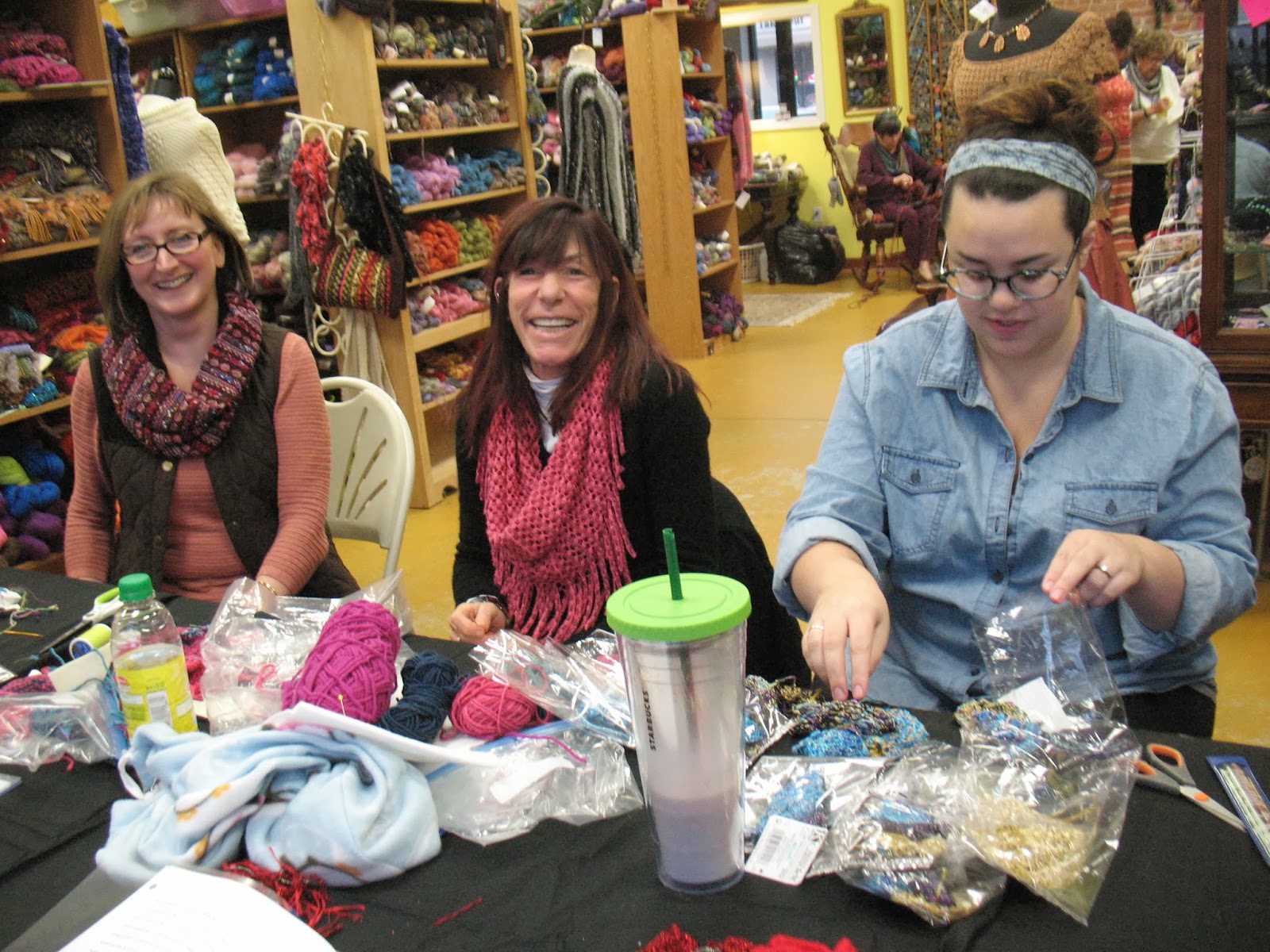 Yarn Tasting at the Yarn Box in Pawling, New York, such fun, about 84 people attended the festivities in the newly renovated shop. Marie, owner of the shop, and Erlinda, from Cascade yarns provided yarn, food and fun for all.