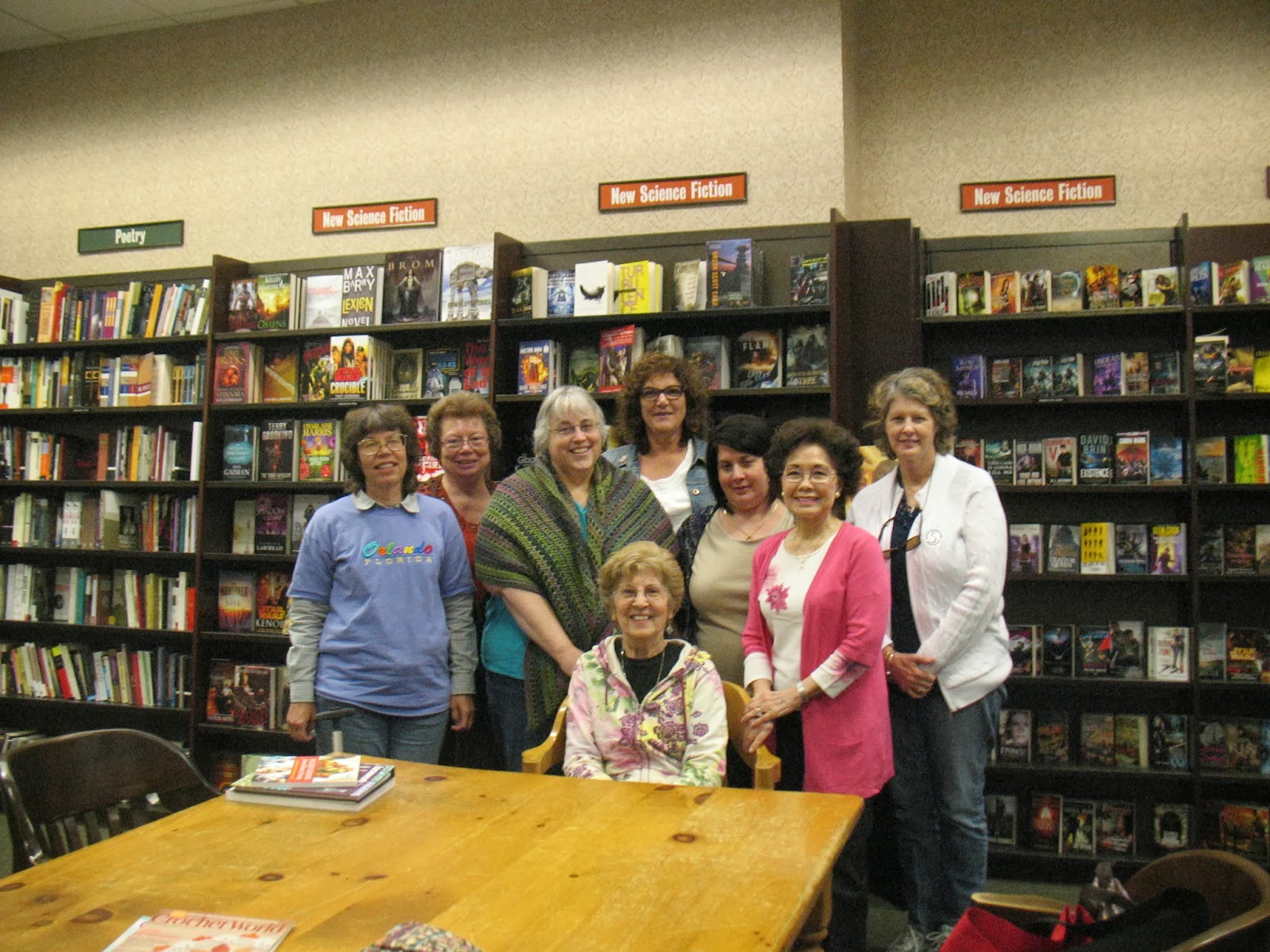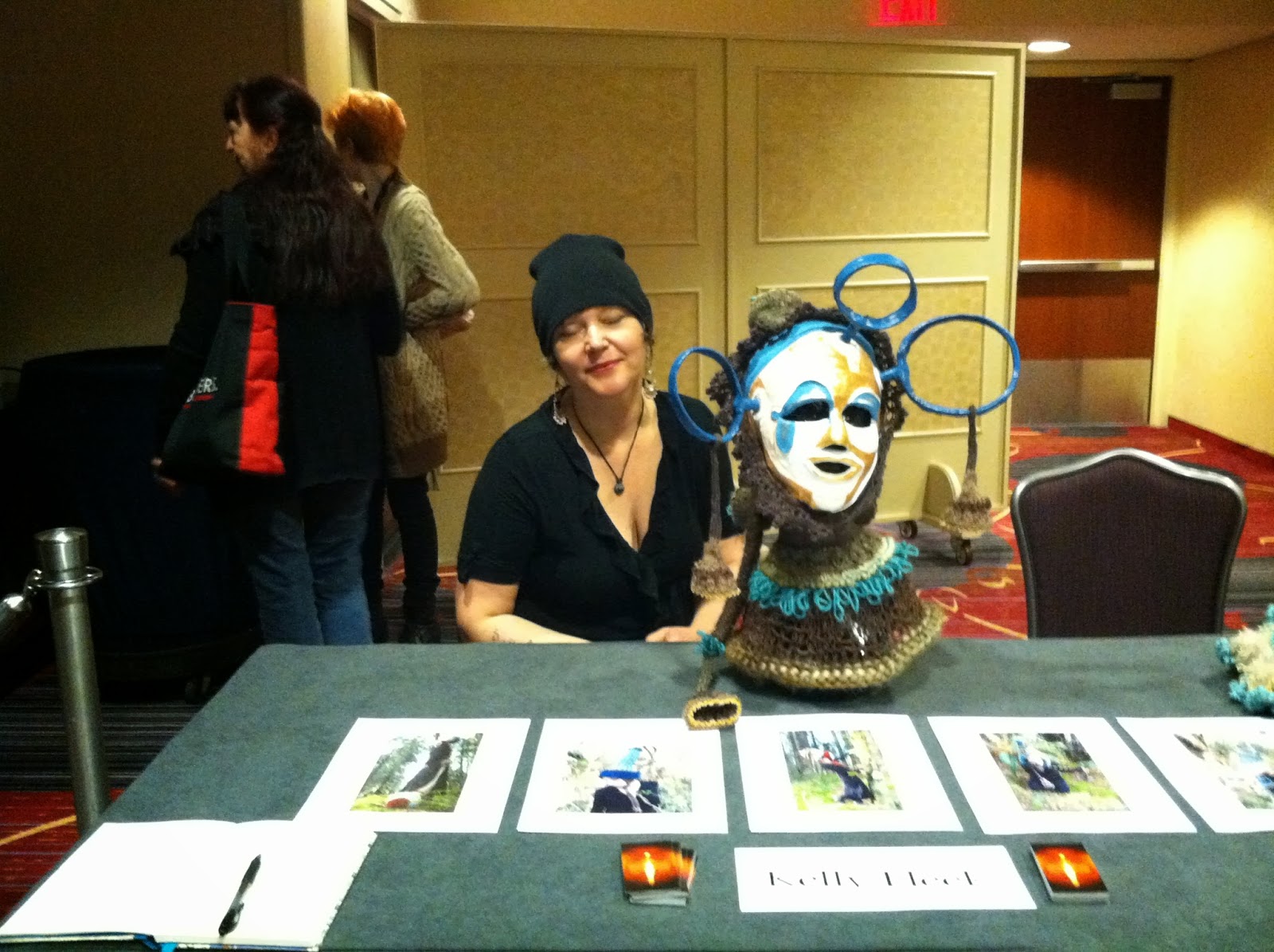 Me, book signing at The Elegant Ewe Booth. I am totally Grannied out, Granny sweater, Granny cookies, Granny Shoes, what fun!