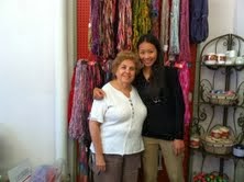 Then a fun thing happened, a lovely young girl came into the shop and asked Marie (owner of the shop) if Marie could teach her how to knit. It turned out that she is Lucy Liu's stand in on the show. I asked her if I could take some pictures and she gave me permission to share them on my blog.