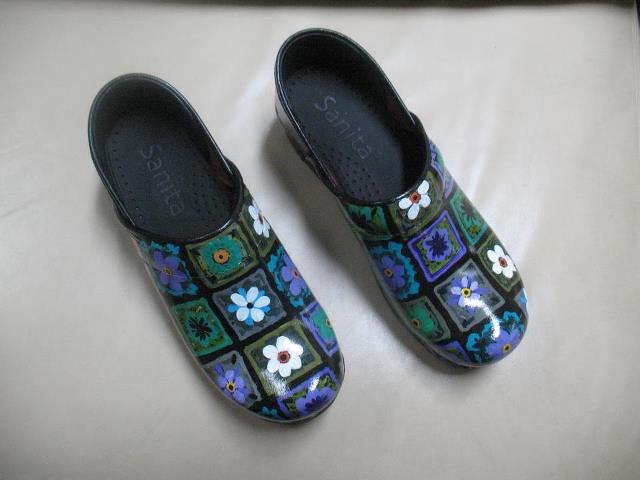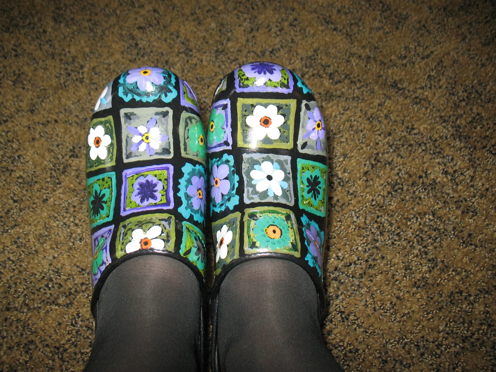 A while ago I ordered a pair of custom painted clogs from a company called The Swanx, I loved my clogs and was very happy with them. Originally I was afraid to order because they said that they were not responsible if I ordered the wrong size. I arranged to have them send me a pair to try on, at my expense, before they painted them. I felt that once I had my correct size, I did not have to do that again.