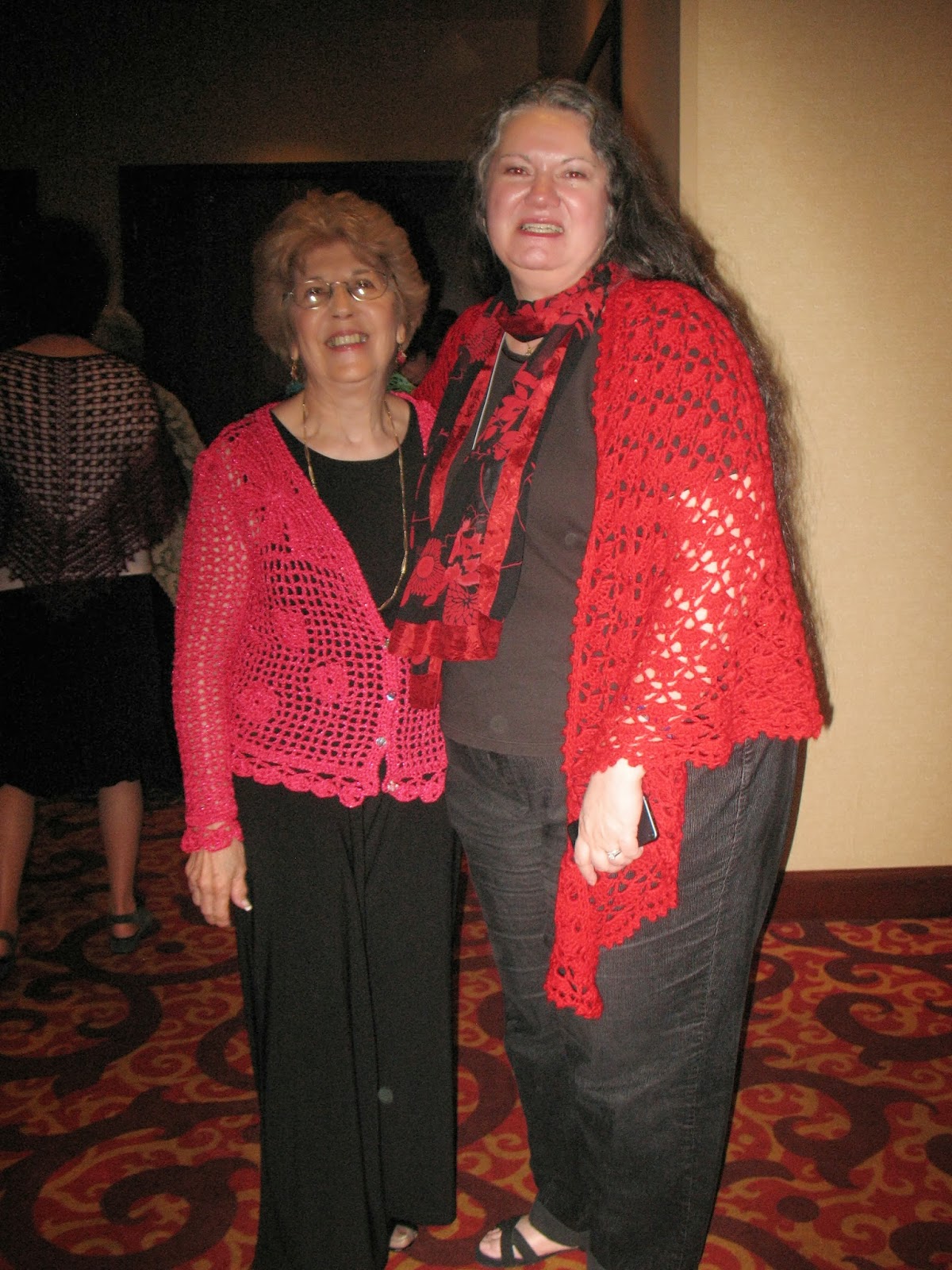 Me and one of my favorite people, Barbara Hillery Van Elsen. Not many people know that Barbara is the reason that I am even teaching at conferences. Barbara "met" me on line quite a few years ago. Barbara was then president of the New York City Crochet Guild, and she invited me to teach at their retreat weekend. I was fairly new to the Internet, and even though I had written a few books and designed for magazines, I had only taught locally. I did not even know about guilds, retreats and conferences. Barbara opened doors that I did not even know were there, so a great big "Thank You" to Barbara.
