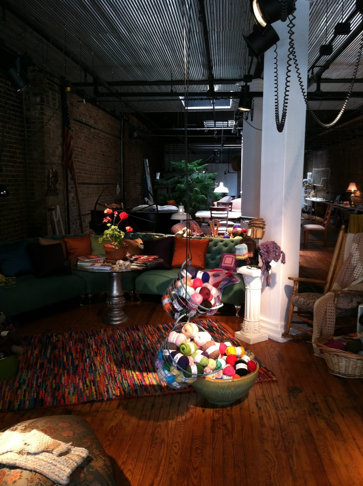 What a treat for me. The yarn shop was so unique, set up more like an art studio than a yarn shop. Very spacious and inviting. The owner, James, was delightful and welcoming. James has a lot of big plans for the shop. He is planning to have classes in knitting, crochet and needlepoint and will be carrying the finest designer yarns and threads. He will also be featuring books, patterns and handcrafted needlework by fiber and textile artists.