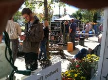 When I got to the shop, quite a scene was going on. Production people setting up all kinds of equipment, people gathering to watch, such excitement. They were filming a scene for an upcoming "Elementary" one of my favorite shows as I am a Sherlock Holmes fan. We could not get close enough to see much, but this is what we saw from the shop window.