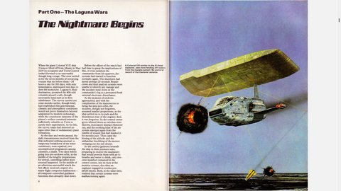Cowley himself did something similar in his sequel to Spacecraft, a book called Great Space Battles. More than just a fictional technical manual, Great Space Battles combined the gorgeous sci-fi art with a bunch of fun, pulpy short stories that brought the artwork to life (above). He ended up writing two more of those in-universe books: Spacewreck, and Starliners 2200AD - both of which I highly recommend.