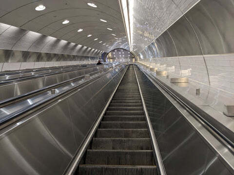 Quite frankly, GC Madison is just too big. The station has four levels. Descending from old Grand Central, you start in a full-length mezzanine beneath the existing Grand Central platforms. From there you have to go down an escalator 182 feet long and nine stories deep. When I was riding it, the Very Long Escalator stopped abruptly and broke, and the thing is less than a week old. This brings you to a second full-length mezzanine deep beneath Park Avenue. The second mezzanine is built between the two levels of train platforms. I realize that this description is confusing, and quite frankly, it's because the layout is incredibly confusing. (The MTA's official diagram isn't much better.)