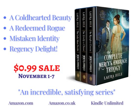 Oh, and my exciting Regency, the Mercy’s Embrace Trilogy, is marked down to only 99 cents.