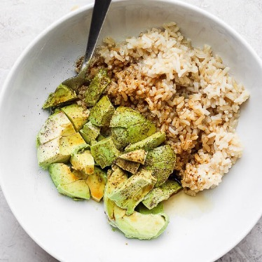 So here is the time saving tip--cook a large pot of brown rice and use it to create different rice bowl meals for breakfast, lunch and dinner. Super easy! For example, you can make a breakfast rice bowl by warming up the rice with some added blueberries and with an alternative milk such as almond or oat milk. Top it with off about a tablespoon of maple syrup, and if you like, cinnamon and maybe a few almond slivers.