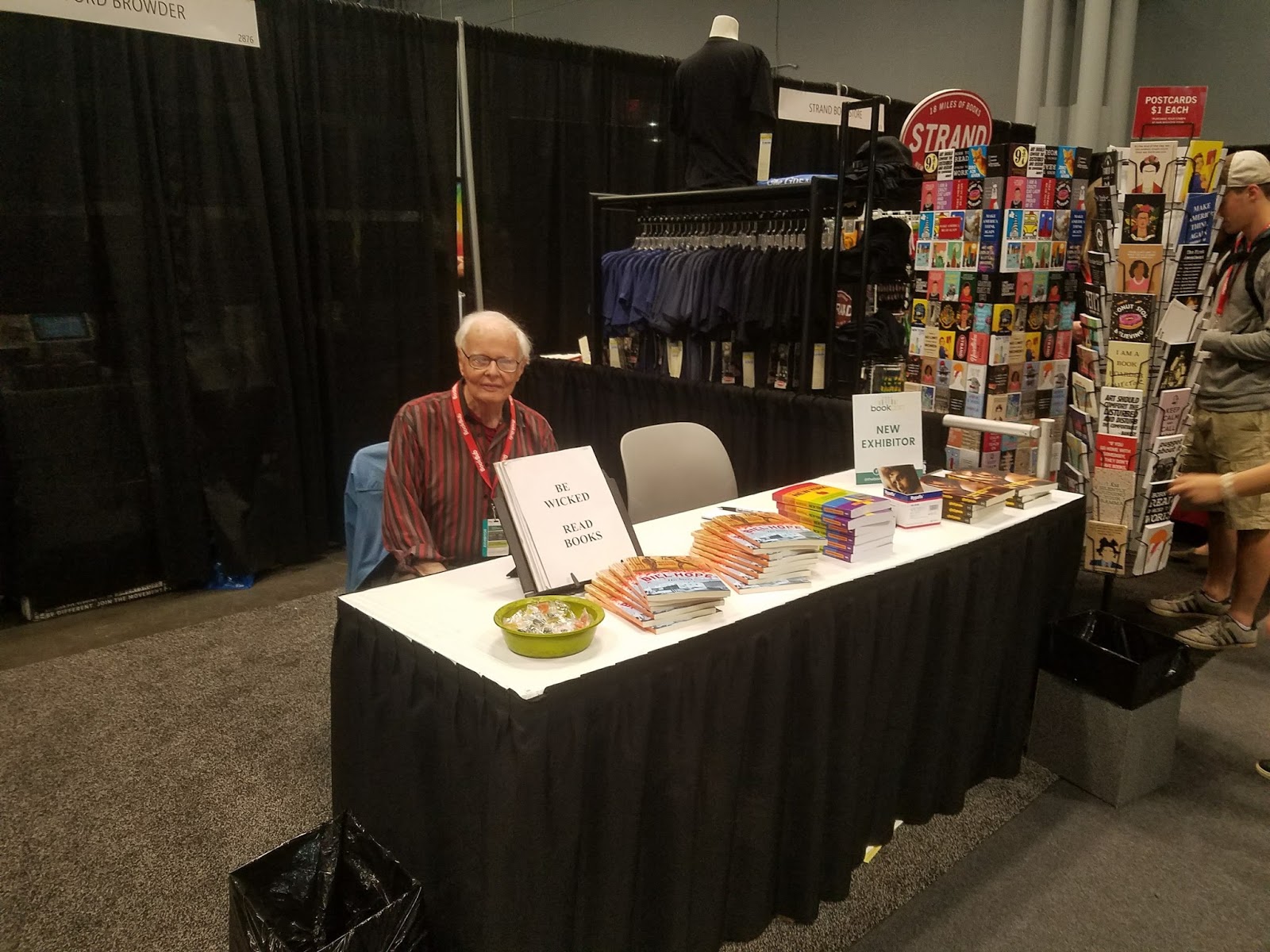We were in booth 1142 of the BookCon section, where small presses and indie authors – the small fry of the show -- exhibit on the weekend. We and the other BookCon exhibitors had chosen not to exhibit at BookExpo, the preceding two days that are closed to the public, while the book trade talks to itself. Arriving at the Javits Center the evening of Friday, June 1, for the move-in, Silas and I agreed that the looming big mass of the Javits Center, at West 34th Street and Eleventh Avenue, is just plain ugly. Worse still, it was built with huge cost overruns by mob-affiliated contractors. But the facilities it offers inside are remarkable, and the book fair, being inside, can ignore the weather. So we delivered our books and other stuff to the booth and departed, hoping for a good night’s rest before the opening at 10 a.m. on Saturday, June 2.