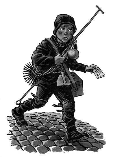 Chimney sweeps were common on the streets of nineteenth-century New York, as in Victorian England. Usually a master and his young apprentice roamed the streets together, the master calling out his cry to alert the householders in need of his services. The boy would climb up the chimney with a brush to loosen the soot, and then climb down again to bag and remove it. If he didn't climb properly, he might get stuck in there and not come out alive. Only much later did machines replace climbing boys.