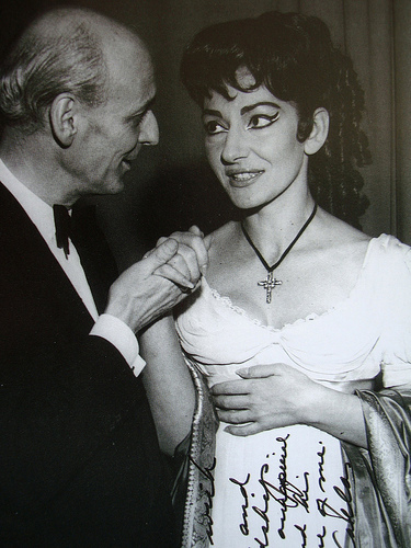 earned her the name of the Tigress. Callas’s 1956 debut at the Met in Norma was less than brilliant, but by now the public’s interest in her had reached a fever pitch. On the Saturday matinée following the debut, she sent word from her dressing room that she was unable to go on. Rushing to her, Bing found that she was genuinely ill, but after a few words of encouragement from him she agreed to perform, thus forestalling a riot in the theater. She then had obligations elsewhere, but agreed to return for future seasons. In the interim she walked out in mid-performance in Rome, with the President of Italy in the audience, provoking a firestorm of criticism abroad. Further complications developed, arising in part from Callas’s jealousy of a rival soprano, Renata Tebaldi, who also had commitments with the Met. Finally the negotiations broke down, and the ill-informed press blazoned the headline BING FIRES CALLAS. After that there was little love between them; according to his memoir, in Milan she actually canceled a performance, for fear lest he be in the audience. But in time both mellowed, and after she shed her husband Meneghini, always a difficult go-between, they became friends again. In his memoir Bing emphasizes that Callas was in fact quite girlish, with an innocent dependence on others when she didn't feel she had to be wary. When Tebaldi sang an opening night Adriana Lecouvreur at the new Met in 1968, Callas was a guest in Bing’s box. Afterward Callas agreed to go backstage to see Tebaldi; when they met, the two rivals fell into each other’s arms amid an amplitude of tears.