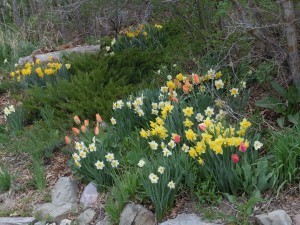 Spring came early this year. I don’t look at a date on the calendar to tell me when spring arrives. Spring arrives when the first wild onion blooms in May. But Mother Nature fooled us. Wild onion bloomed the middle of April and is already dying. Normally, snow is just disappearing from the bottom of the driveway and snowdrops and daffodils are poking from the soil. Now, daffodils, tulips and hyacinth in full bloom are rioting down there. Perennials seem to sprout up overnight. And the damned weeds.