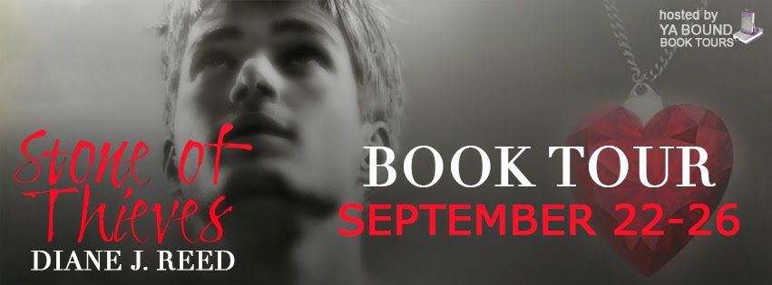 Stone of Thieves (Robbin' Hearts Series #2)by Diane J. Reed Release Date: 05/08/14238 pagesSummary from Goodreads: The Stone of Thieves . . . for centuries its magnetic draw has twisted the hearts of ambitious men and women with the promise of power, passion, and intrigue until it fell into the hands of unlikely thieves Robin and her boyfriend Creek. But can they steal their destiny away from the curse that pursues this magnificent ruby heart?
