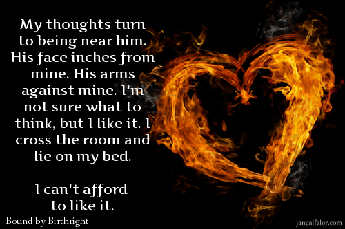 My hand brushes his.I should pull away. I will pull away.Only, before I can do so, he leans closer.My breath becomes shallow and catches in my throat. A flame kindles in my heart. It’s small at first, but then bursts into a blaze coursing through my body. I tilt my face toward his, and time ceases to exist as I’m aware of nothing but him.My own breathing matches the rapid rise and fall of his chest. I can't help but take him in, from his chiseled jaw line all the way to his distinguished brow. From his angular nose to a small scar above his mouth—a sharp line that cuts across a portion of his upper right lip. I'd noticed it before, but never paid much attention to it.Now it consumes me. My fingers want to touch it. My lips want to brush against it.We stay locked in a halfway almost-there-but-not-quite kiss. With his strong arms, he pulls me in closer. The warmth of his body fills me, fighting against the chill in the air. His lips hover just above mine. He reaches up and strokes my face.As we gaze into each other's eyes, I melt into him, losing myself. The spell I cast on my eyes falters, and they change to their true hue.Stiffing a cry of pain, I bend my head down and reactivate the spell. My eyes fill with tears from the stinging, but they'll no longer appear as my own. The crushing ache is much worse in my chest, though I can't tell if it’s from not kissing him or almost doing so.