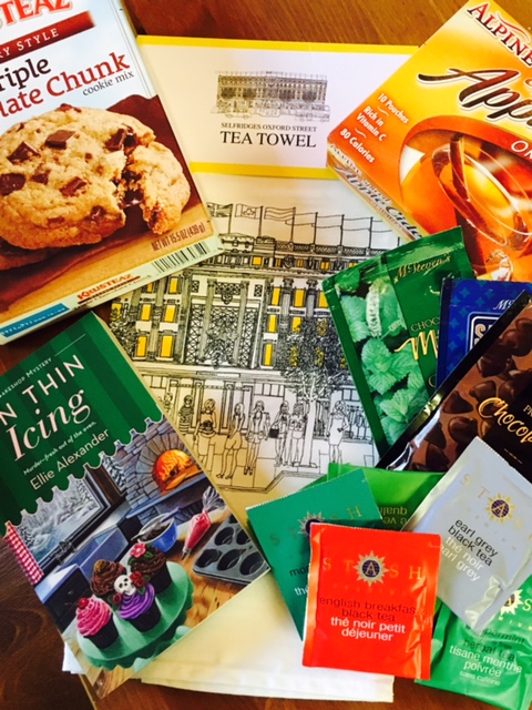 Triple chocolate cookie mix, Alpine spiced cider, Collection of Stash teas, Collection of gourmet hot chocolates, Oxford tea towel, Signed copy of On Thin IcingUS onlyEnds Jan. 19, 2016Prizing provided by the author. Must be 13 or older and have parental permission if under 17. Void where prohibited by law. No purchase necessary to win.
