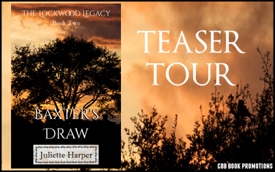 Welcome to the teaser tour for Baxter's Draw, the second book in The Lockwood Legacy series by Juliette Harper. This is an adult contemporary mystery that is also very focused on family, small town and ranch life as well as some clean romance. Check out the excerpt and then enter the giveaway at the bottom for the $100 Amazon gift card!
