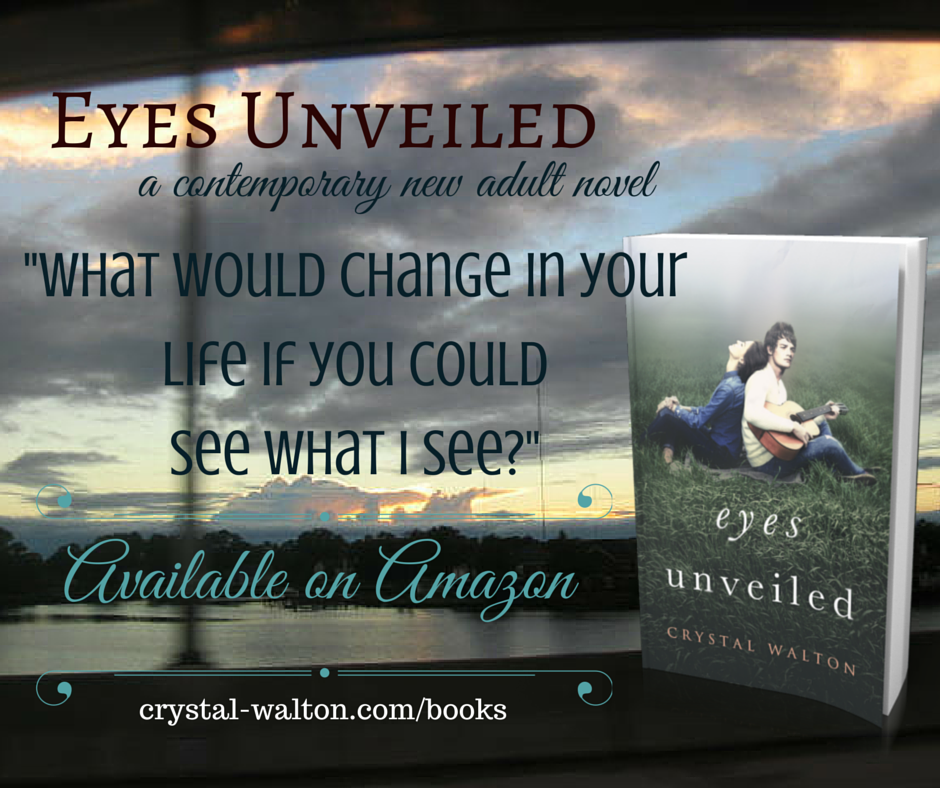 Eyes Unveiled (Unveiled Series, Book 1)by Crystal Walton Release Date: 02/01/15259 pagesSummary from Goodreads: Twenty-one-year-old Emma Matthews lost the song in her heart the same night she lost her dad. With an unfulfilled promise and an ultimatum shadowing her junior year of college, maybe it’s better that way. You can’t hurt if you can’t feel.
