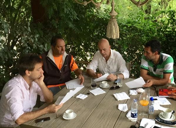 "Malena prepara la picada y yo el asado. ¡Felicidades!" escribe un festivo Sergio Massa. "En Villa La Ñata mantuvimos una reunión de trabajo con eje en el Operativo Sol, obras y el comienzo de la temporada 2015" le contesta un laborioso Daniel Scioli. Y mandan fotos probatorias.