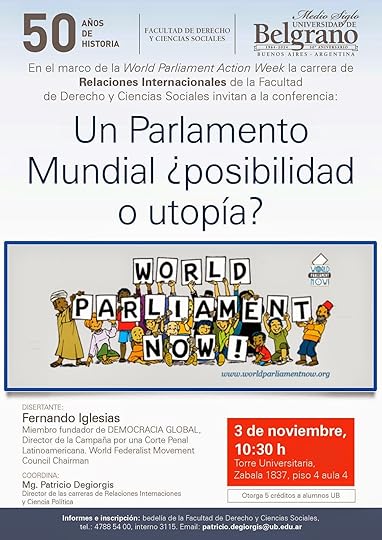 El lunes, en la Universidad de Belgrano, mi conferencia: "Un Parlamento Mundial: ¿posibilidad o utopía?"