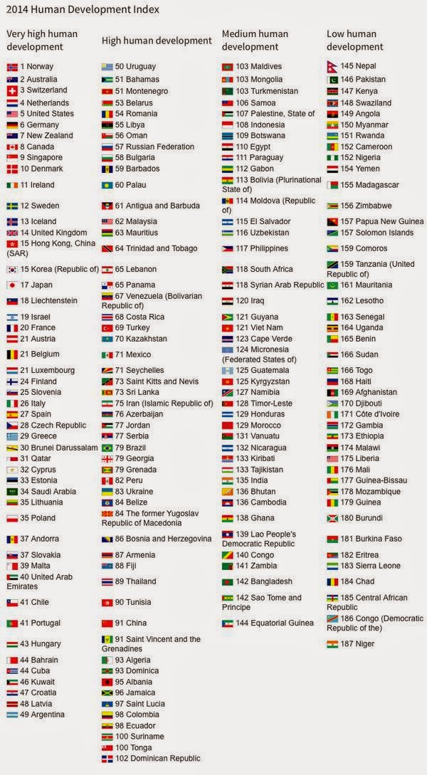 ÍNDICE de DESARROLLO HUMANO del Programa de las Naciones Unidas para el Desarrollo (el más conocido y confiable del mundo)