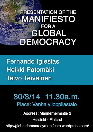 Y el domingo -después de Londres, Roma, San Sebastián, Buenos Aires y París- haremos en Helsinki la sexta presentación del Manifiesto por una Democracia Global http://globaldemocracymanifesto.wordpress.com/espanol/ en Helsinki.