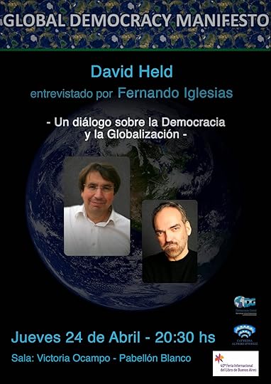 Será el jueves 24 de abril, en la inauguración de la Feria del Libro, bajo el título “David Held entrevistado por Fernando Iglesias - Un diálogo sobre la democracia y la globalización”, y constará de una breve conferencia de David, algunas preguntas de mi parte y otras, por parte del público.